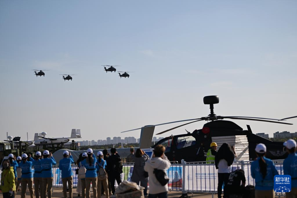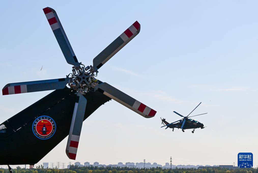 10月14日,参加飞行表演的直升机进行演练。新华社记者 孙凡越 摄pagebreak