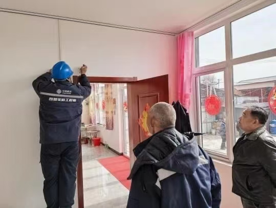 天津移动蓟州分公司工程师正在安装烟感火灾报警器
