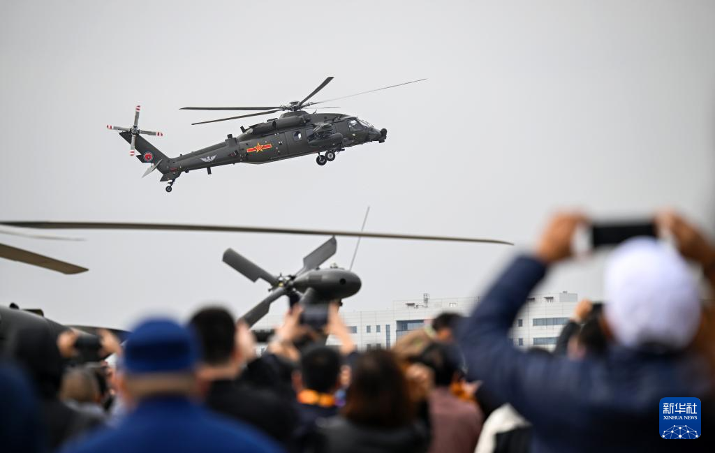 10月17日,直-20T直升机在进行飞行表演。新华社记者 赵子硕 摄