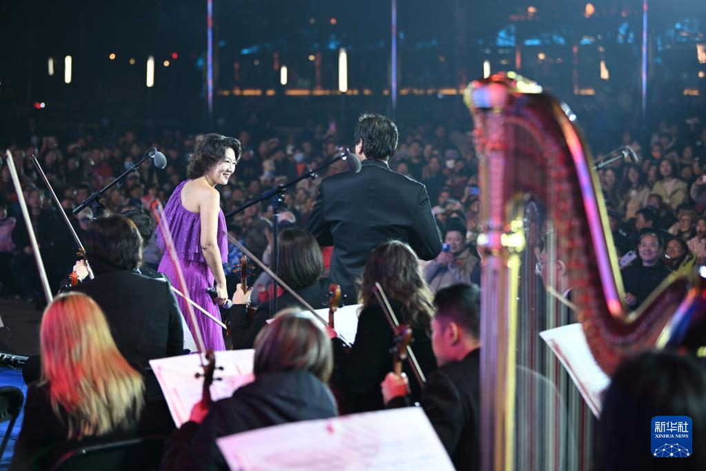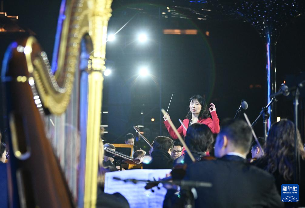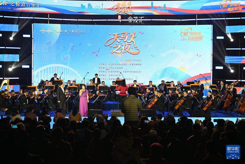10月25日,天津交响乐团在海河岸边的金茂汇广场献上“天马之夜”交响乐专场演出,为即将开跑的天津马拉松比赛营造良好氛围。
