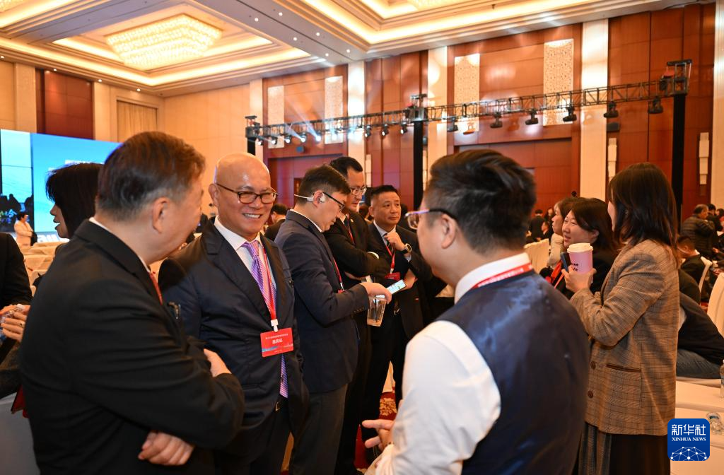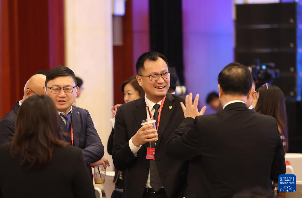 10月29日,与会嘉宾参加第十六届津台投资合作洽谈会会场沟通交流。新华社记者 孙凡越 摄
