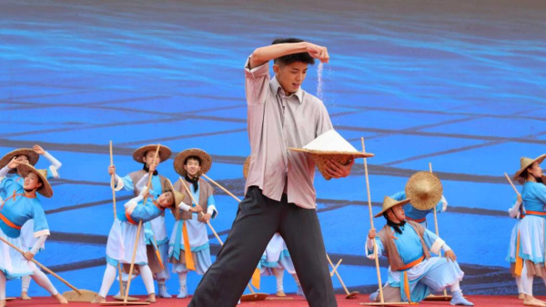 庆典现场,原创歌舞剧《镲韵纷飞》《玉砂谣》《盐》与歌伴舞《芦花》精彩上演,艺术化呈现盐场千年变迁。职工合唱《汉沽盐场场歌》气势磅礴。