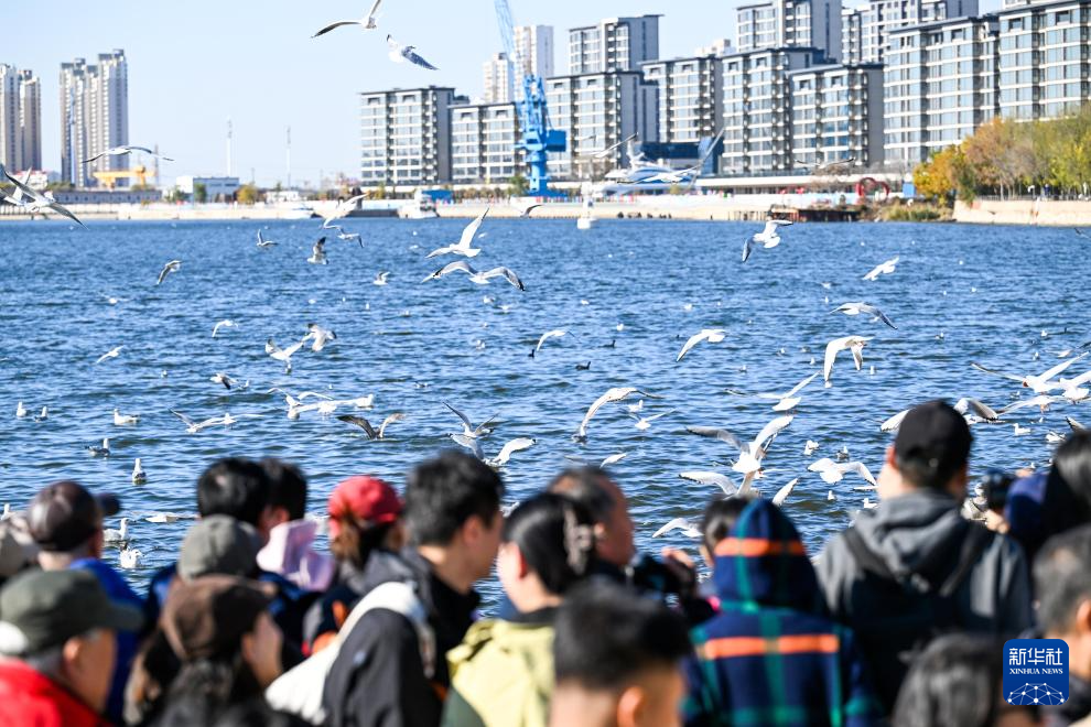 近日,天津市迎来候鸟迁徙高峰,大批海鸥从寒冷的西伯利亚迁徙至滨海新区老码头附近的海河岸边越冬,每天栖息在这里的海鸥达到上千只,吸引了许多游客前来观赏。