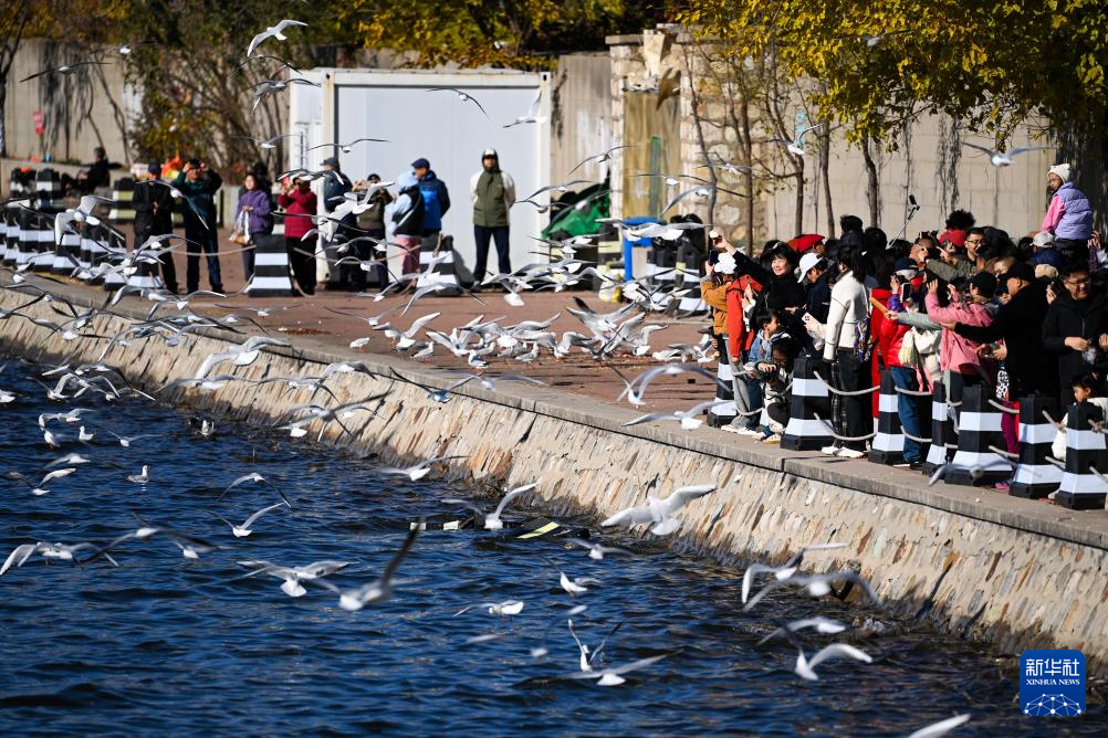 11月13日,游客在海河岸边观赏海鸥。新华社记者 赵子硕 摄pagebreak