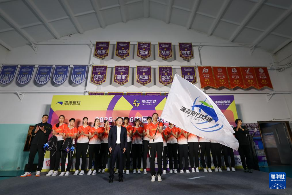 当日,2025-2026中国排球超级联赛天津渤海银行女排与天津食品集团男排出征仪式在天津举行。