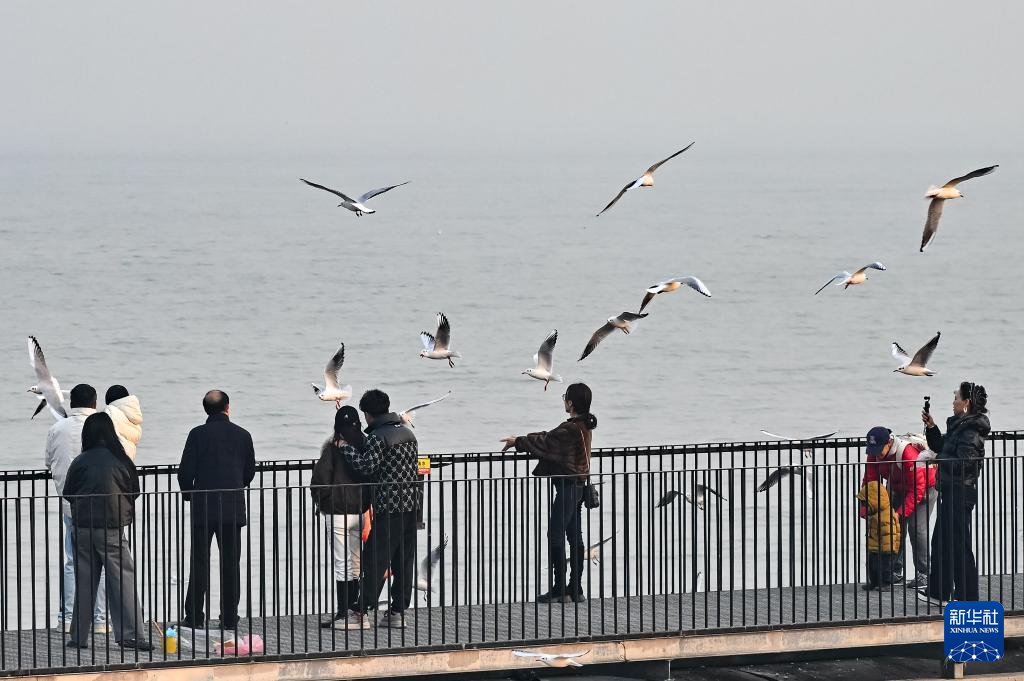 游人在观赏海鸥(12月10日摄)。新华社记者 李然 摄pagebreak