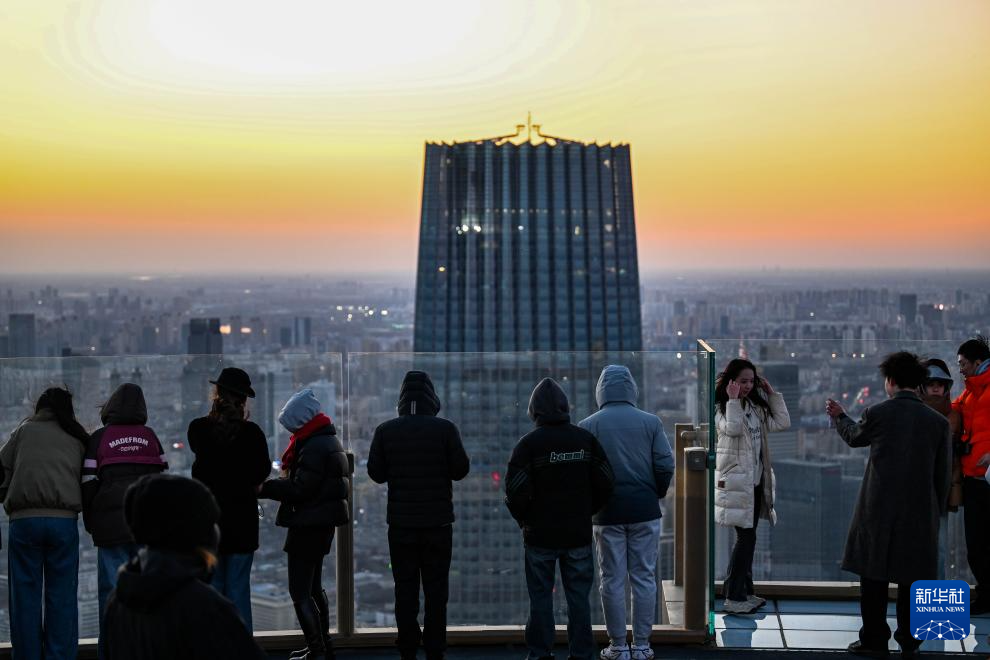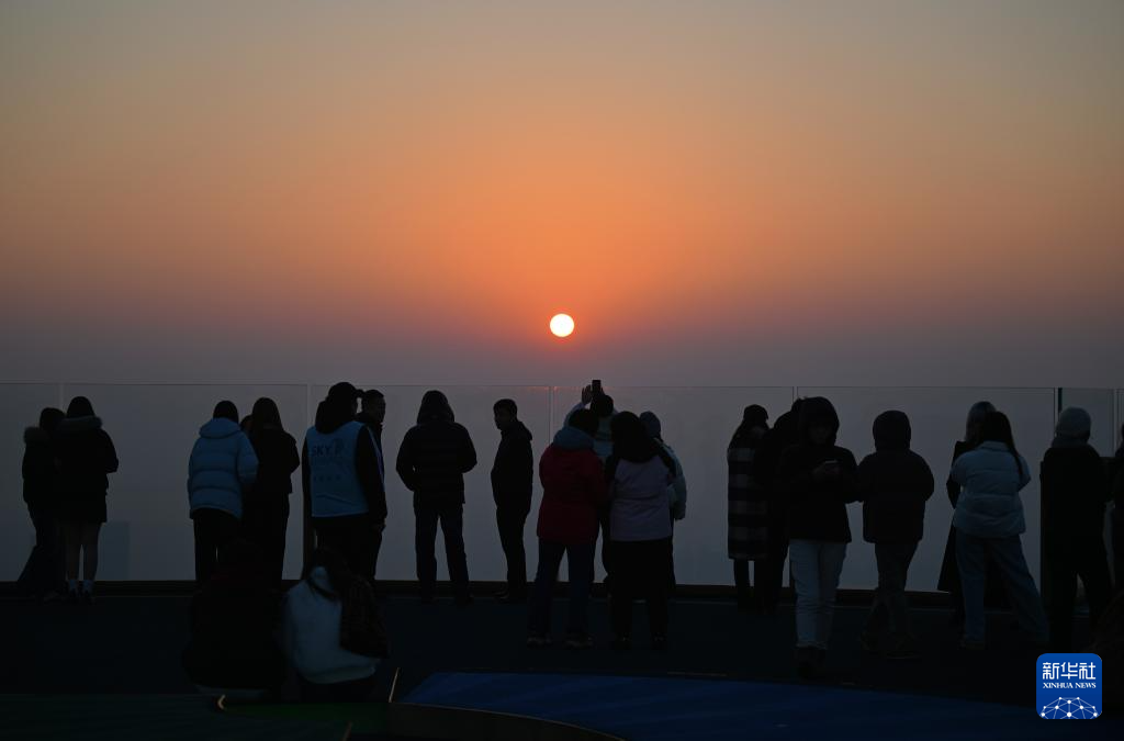 游人在津湾云顶高空观景台欣赏落日(12月20日摄)。新华社记者 赵子硕 摄pagebreak