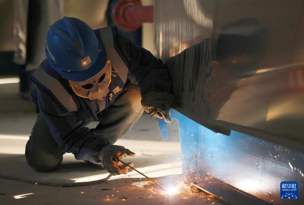 12月30日,中建六局水利水电建设集团有限公司的建设者在施工现场进行焊接作业。新华社记者 李然 摄