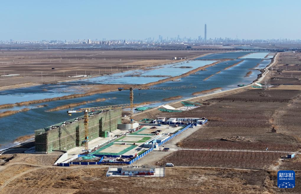 12月30日拍摄的清南分洪闸在建工程现场(无人机照片)。新华社记者 李然 摄