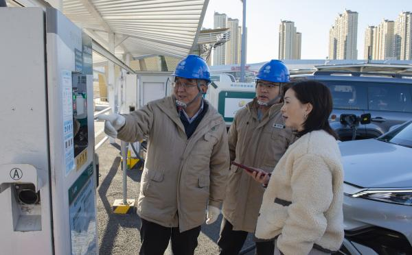 元旦前一天,“时代楷模”张黎明带领着团队来到天津市滨海新区于家堡“双碳”创新充电站,对充电设施进行全面检查与维护,全力服务保障元旦绿色出行。