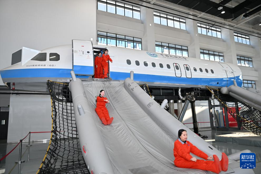 在中国民航大学,泰国学员在客舱模拟器中进行实操培训(1月20日摄)。新华社记者 孙凡越 摄pagebreak