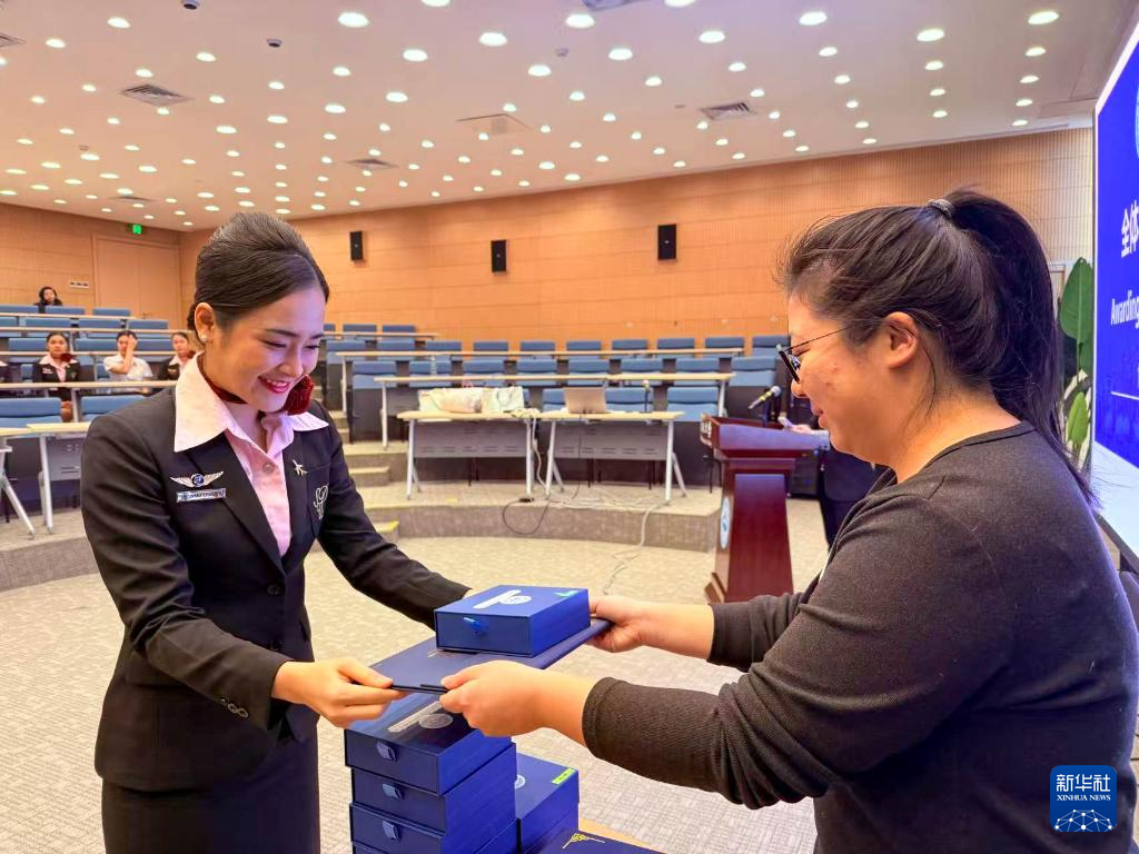 2月3日,泰国学员在中国民航大学领取结业证书。新华社记者 孙凡越 摄