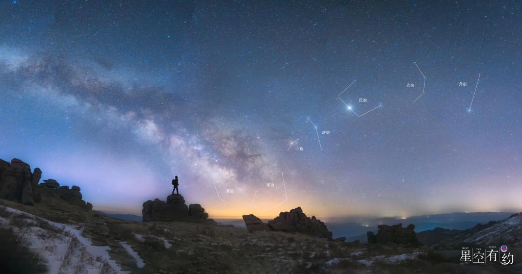 我国古人把穹庐般的星空分为二十八星宿,以七星宿为一组,并以四种动物命名,即东方苍龙,西方白虎,南方朱雀,北方玄武。其中东方苍龙包含了角、亢、氐、房、心、尾、箕七宿,生动地勾勒出“一条龙”的形象。