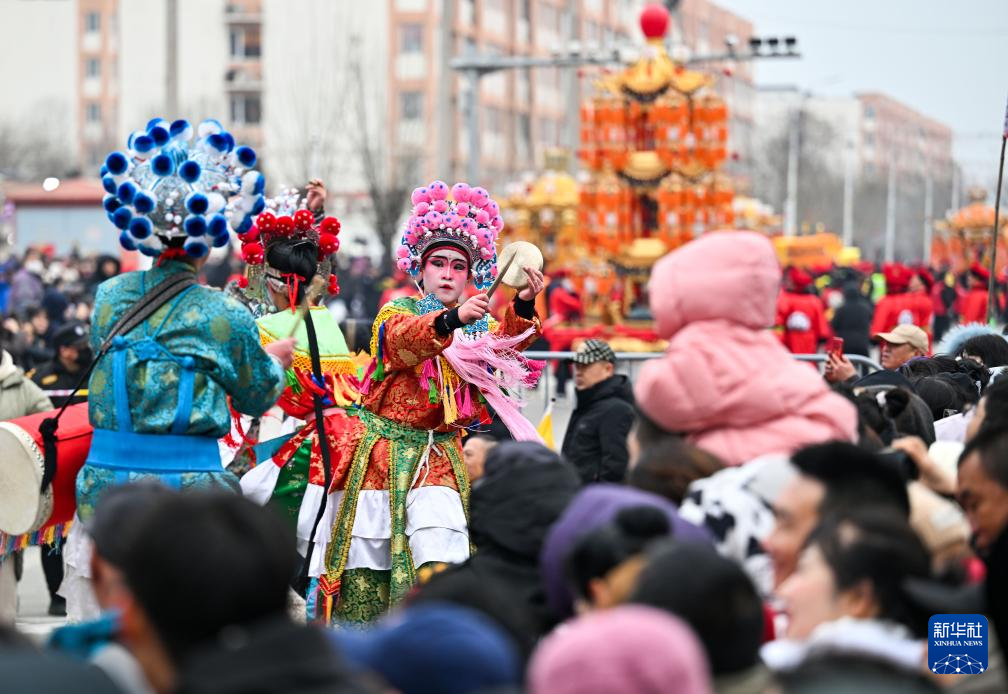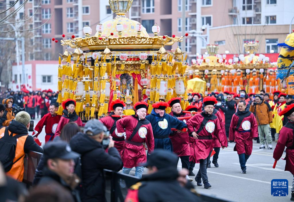 3月4日,演职人员在妈祖祭典(葛沽宝辇会)上表演。新华社记者 赵子硕 摄