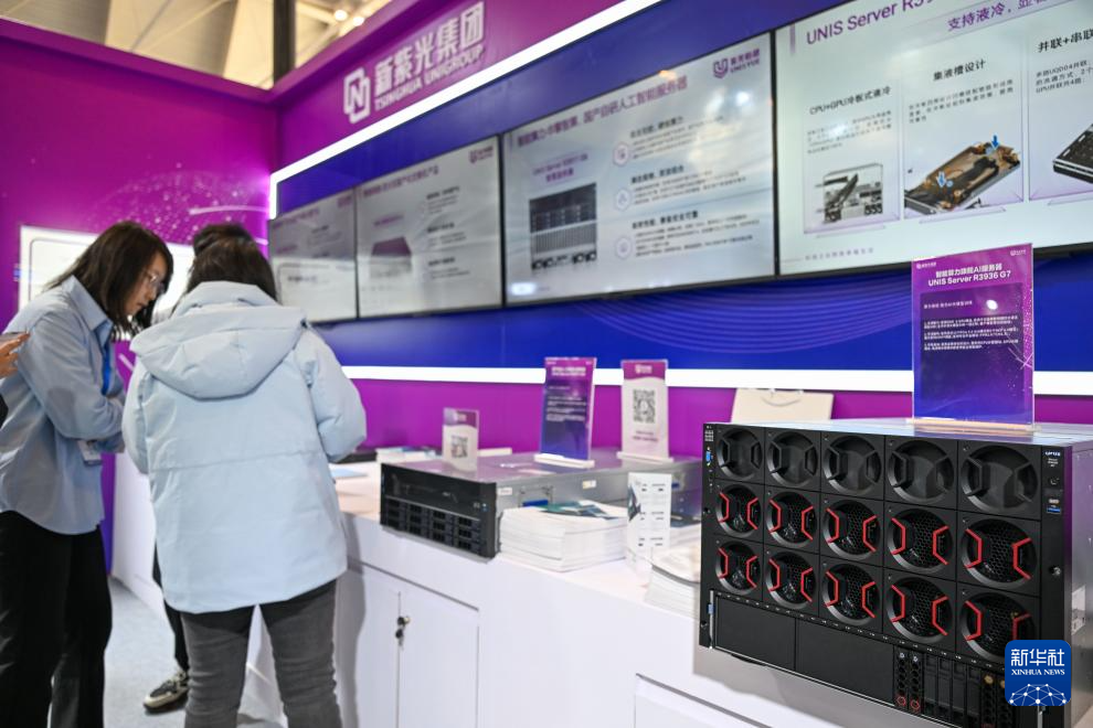 3月18日,观众在天津工博会上参观算力服务器。新华社记者 孙凡越 摄