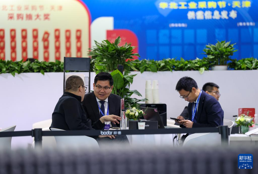 3月18日,客户在天津工博会上洽谈。新华社记者 孙凡越 摄pagebreak