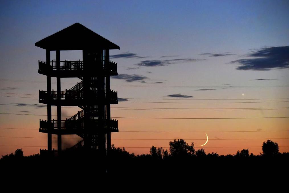 “感兴趣的公众可寻一西方低空视野开阔处观赏。由于二者非常明亮,即使是在光污染较为严重的都市也能用肉眼轻松看到。如果是在光污染较小的农村或郊外,视觉效果会更佳。喜欢摄影的朋友若能搭配独具特色的地标景观,让星月与人文、自然地貌同框入镜,定格下来便是极具氛围感与故事感的创意大片。”杨婧提示。(记者周润健)