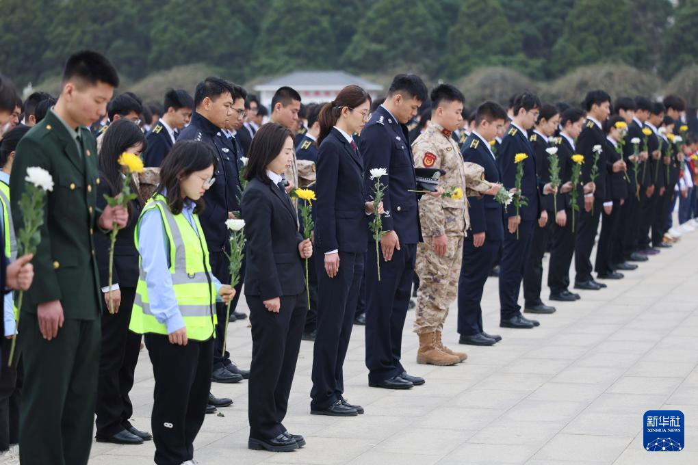 4月3日,人们在活动现场默哀。新华社记者 李然 摄pagebreak