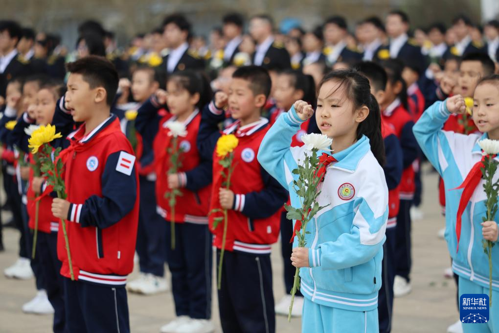 4月3日拍摄的天津市青少年清明祭英烈主题团(队)日活动现场。新华社记者 李然 摄pagebreak