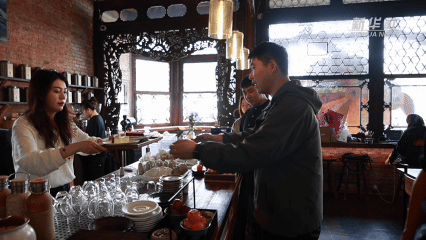 “主理人”花梦煦借助春日经济“海棠花节”,将这座古建筑打造成集餐饮、休闲、艺术展览于一体的时尚消费地标。