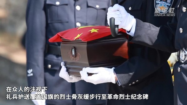 上午10时许,仪式在庄严的中华人民共和国国歌声中开始。在众人的注视下,礼兵护送覆盖国旗的烈士骨灰缓步行至革命烈士纪念碑。在鲜花的簇拥中,这位牺牲75载、血洒宝岛台湾的隐蔽战线烈士,终于归葬其生前组织所在地天津。