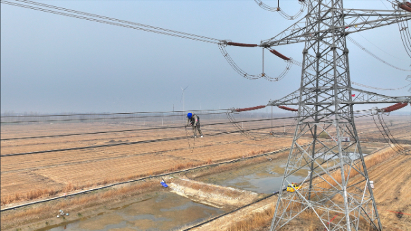 4月7日,500千伏渠芦一线同塔线路挂线完成。该线路是“同塔双回”设计,目前单回运行,本次施工借着天津北1000千伏特高压变电站建设时机,开始对另一侧线路进行挂线施工,线路投运后将成为该特高压变电站的两条500千伏出线。