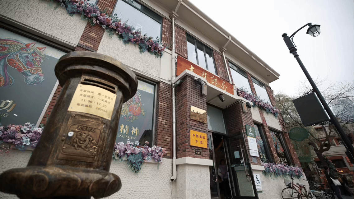 天津五大道,海棠沿街盛放,满目春意盎然。大龙邮局里,邮戳轻响,墨香与花香交织,游客驻足停留,感受慢时光。