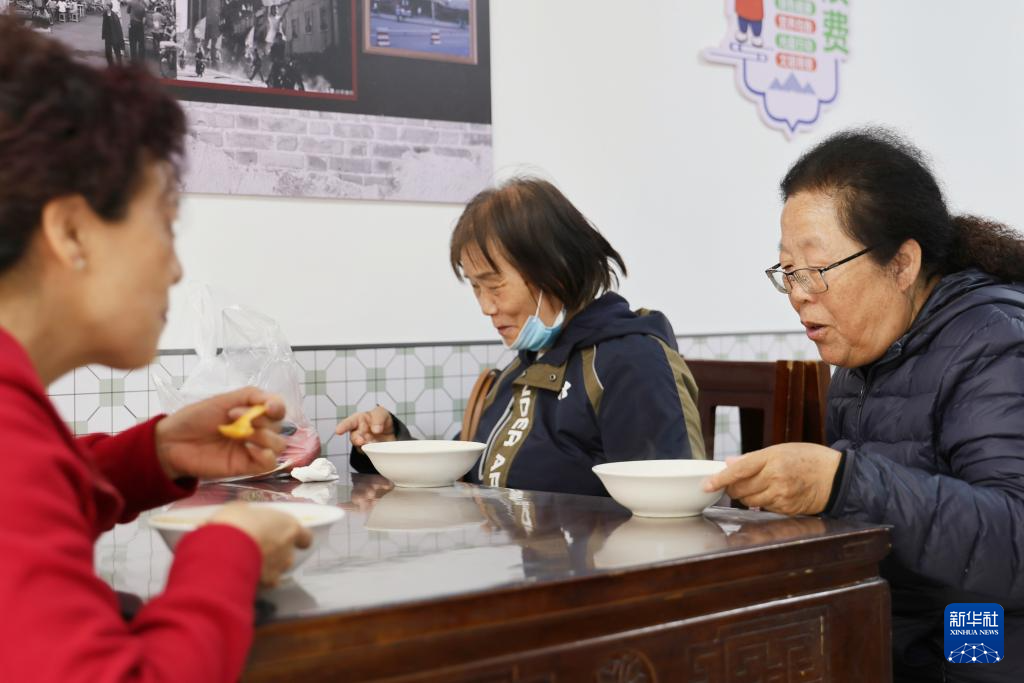 4月14日,社区居民在红石榴大食堂就餐。新华社记者 李然 摄