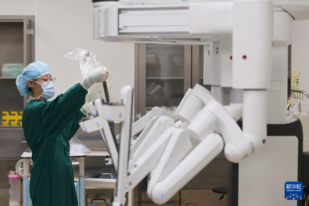 在医院手术室,医生端坐于操控台前,双眼紧盯高清成像屏幕,双手灵活操控手柄,通过床旁机械臂,在患者体内完成精准操作。