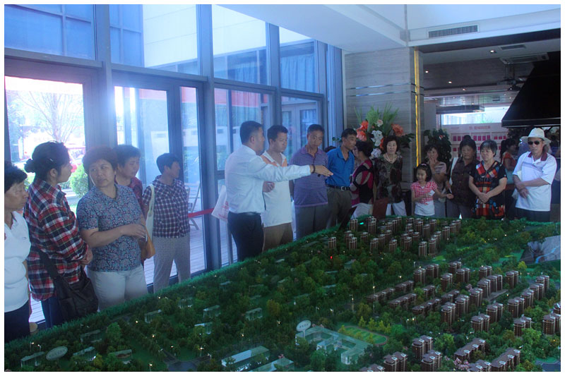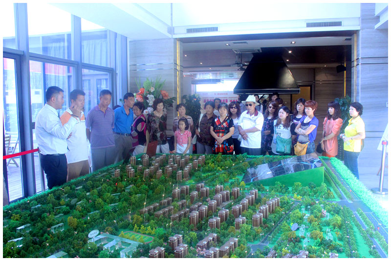 【15:20】下车后,大家在售楼处前合影留念,随后进入售楼处听销售人员讲解沙盘。