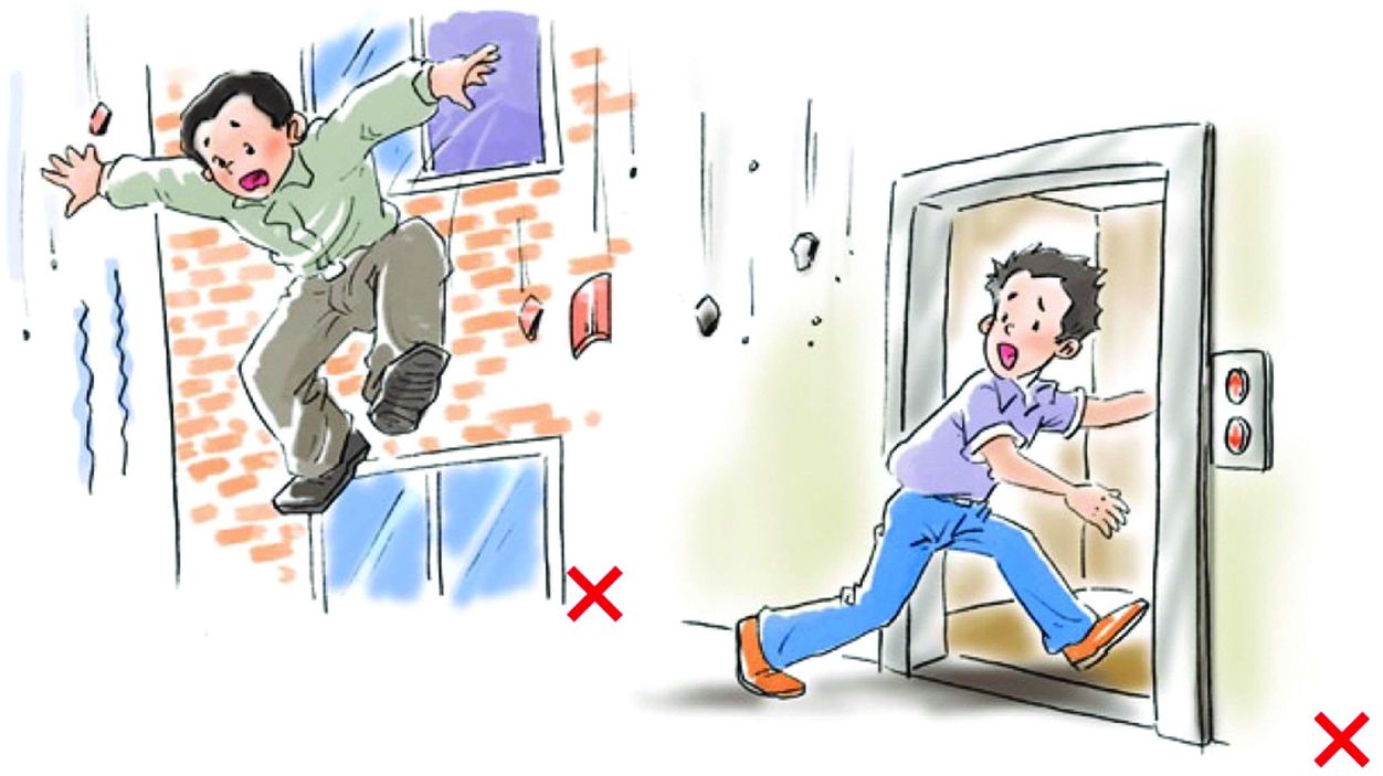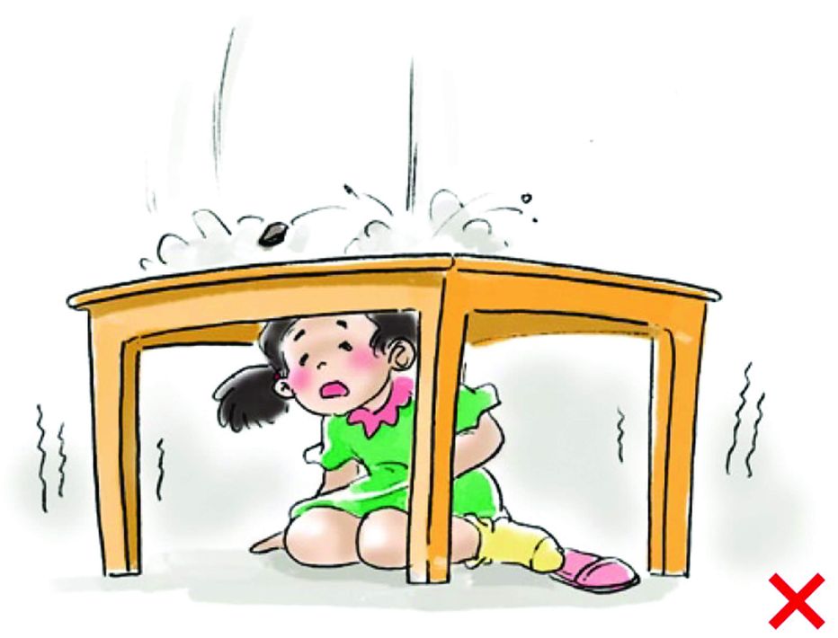 ●震时避险:不要躲在桌子、床铺下面,而是要以比桌、床高度低的姿势,躲在桌子、床铺或坚固家具的旁边。