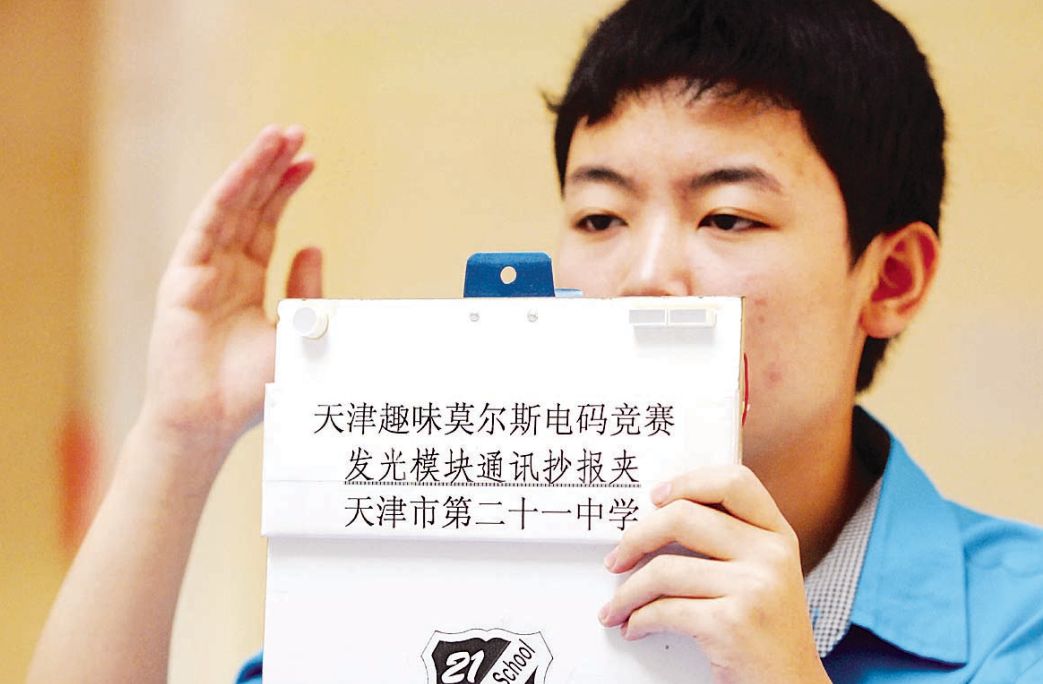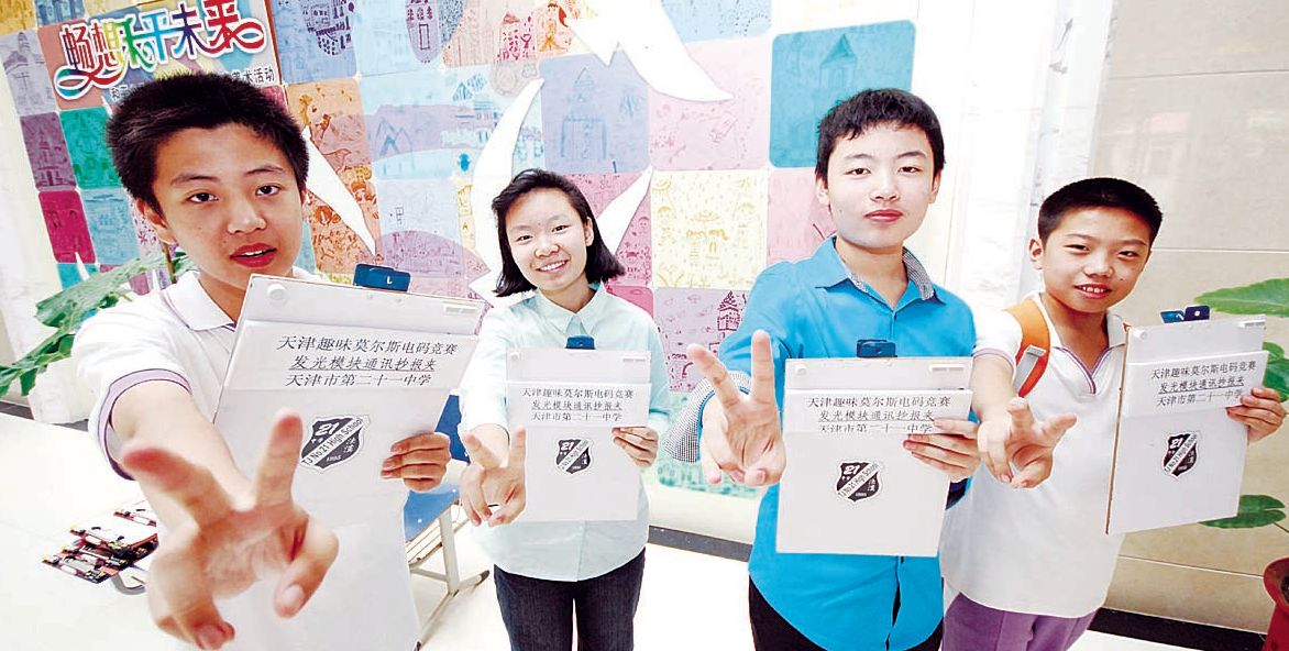 据悉,在和平区教育局的支持下以及和平区青少年宫的大力推广下,现在和平区已有十几所中小学开展了趣味莫尔斯码通讯教学实践。二十一中学开展了启发式教学与实验实践教学法相结合的实践,初步实现了让初一年级学生学会莫尔斯码信息传递的基础过程,在高一年级建立了无线电通讯校本课程。并在此基础上充分发挥学生的奇思妙想,在引导趣味学习上下功夫。师生齐心协力发明了两项莫尔斯码趣味通讯实例,取得了良好的教学效果。