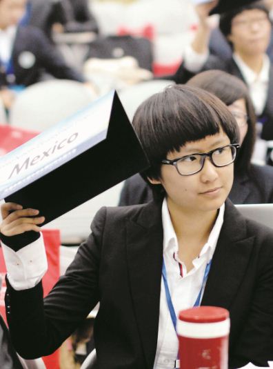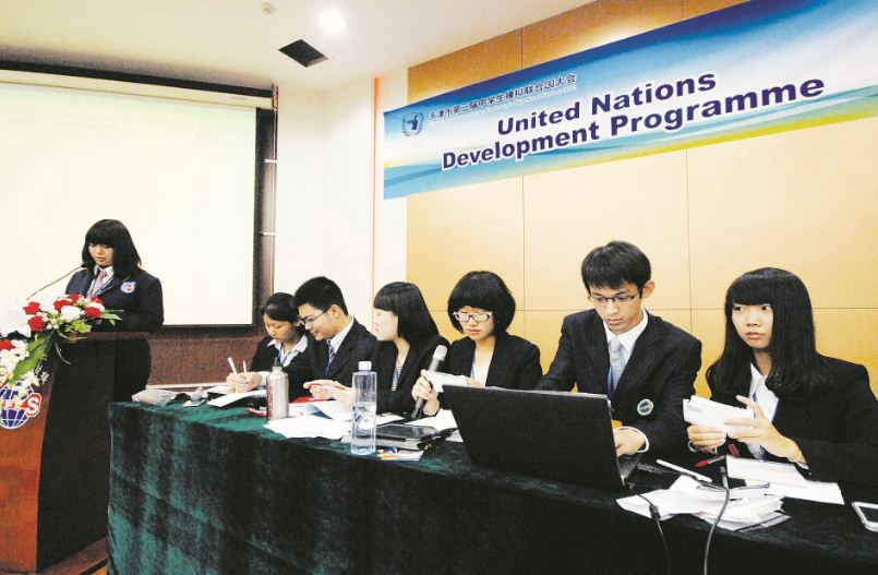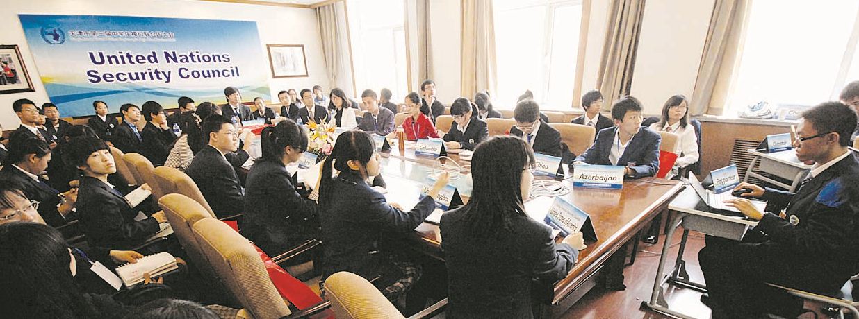 日前,由天津市教育委员会、天津市人民对外友好协会主办,天津外国语大学附属外国语学校承办的天津市第三届中学生模拟联合国大会,在附校同声传译报告厅隆重召开。大会为期两天,参加本次模联大会的"小外交官"们,分别扮演来自121个国家的代表,在大会设置的"安理会""开发计划署""人权理事会"三个会场,按照联合国的会议流程,分别就"伊朗核问题""公海开发问题""非洲地区的人权问题"展开激烈讨论。看着小外交官们专注的神情,许多与会嘉宾感慨地说:"模拟联合国是一项学生社团活动,充分体现了当代中学生关注国际国内形势、关注社会民生的担当与忧患意识,也展现了他们立足世界、高瞻远瞩的爱国情操和具有全球意识、国际视野的跨文化交际能力。"