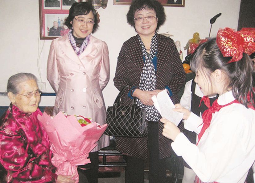 天津市妇联儿童部部长王冬梅为老人送去了亲切的慰问,并送上寿桃和鲜花。孩子们表演了朗诵、乐器演奏等节目。