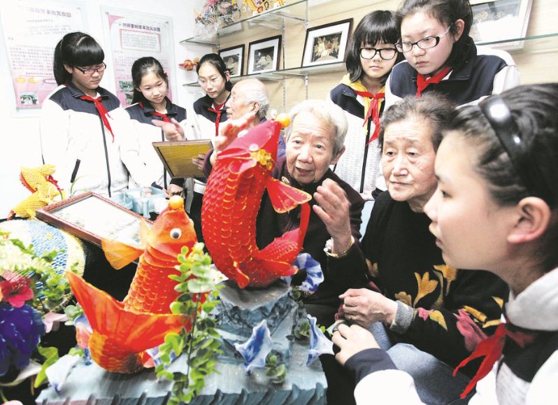 日前,和平区树德里社区志愿者与十一中学的学生一起动手,利用废旧纸张、布头等制成工艺品。