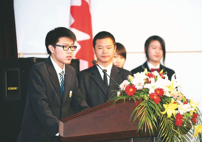 参观访问期间,该校国际高中部的高三学生还用流利的英语进行了国际贸易课题的精彩演讲。演讲中,学生们不仅介绍了所学课程,还针对不同国家进行了国际贸易分析。精彩演讲不时赢得阵阵掌声。 韩羿 摄