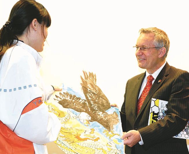 "尊敬的埃德·法斯特先生,您好!这是同学们亲手制作的象征中加两国友谊长存的风筝,请您惠存!"前不久,加拿大国际贸易部部长兼亚太门户事务部长埃德·法斯特、加拿大驻华大使赵朴到天津英华国际学校参观访问。