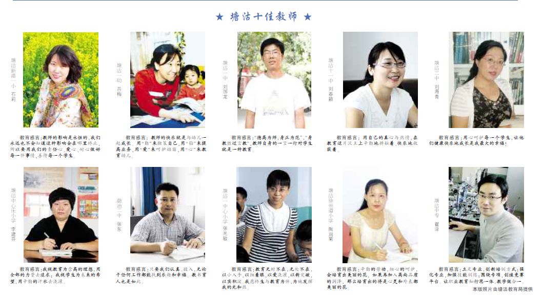 塘沽教育局领导一以贯之地重视对师资的培养,认真谋划,通过各种渠道加大对教师的培养力度,做到教师培养科学化和规范化。尤其是开展创先争优活动以来,全系统上下齐努力,创先争优已经成为教师的自觉行为。全体教师以"办好人民满意的教育"为己任,努力提高自己的师德修养和业务水平。从他们中间,涌现出一批优秀的排头兵。在这些优秀教师的影响和带动下,塘沽广大教师你追我赶,人人思进,师资队伍素质明显提升。