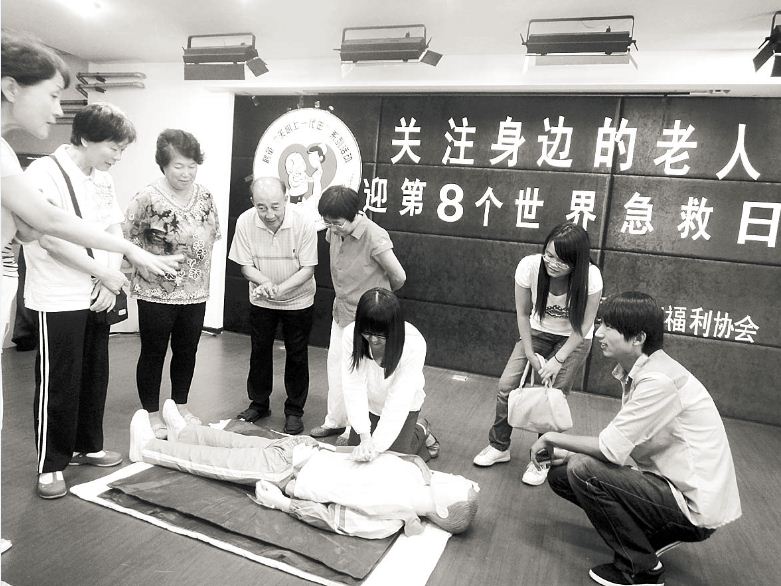 日前,本市举办"关注身边老人"急救知识演练活动。鹤童老人护理职业培训学校的专家通过幻灯片和现场演示,为前来参加活动的天津工业大学学生和社区健康老人讲解了心肺复苏、外伤止血等急救知识。此次活动旨在呼吁更多的人掌握基本急救知识,关注身边的老人。