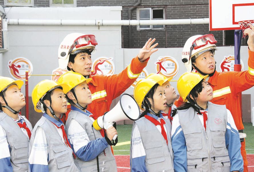 为提高学校火灾防控能力,普及校园消防安全知识,10月23日,和平区劝业场街百货大楼社区、劝业场街派出所联合消防和平支队共同在和平区哈密道小学开设"消防课堂",通过播放消防知识幻灯片、消防装备展示等形式为师生们上了一堂生动的消防安全课。 李想 摄