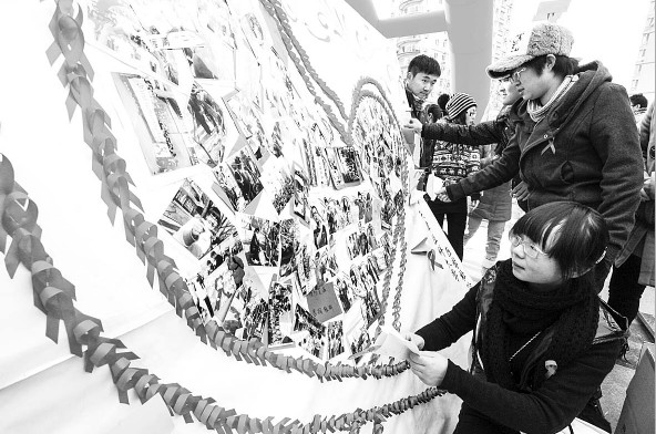 12月1日是第25个世界艾滋病日,天津医科大学医学检验学院传媒实践部联合天津理工大学、天津城建学院、中国民航大学等6所高校以及河西区卫生局等单位,共同举办2012“行动起来,向零艾滋迈进”主题公益宣传活动,向市民普及艾滋病预防知识。 李想 摄