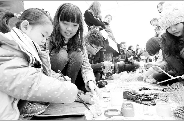 日前,由市教委、市文广局、团市委等单位主办的天津市第三届青年美术节暨天津市首届青少年美术书法摄影大赛获奖作品展在天津美术馆举行。据悉,本次活动自今年5月份启动以来,受到本市青少年美术爱好者的大力支持,征集作品近万件,为广大青少年搭建了展示美术艺术创意才华和交流的平台。图为参展青少年现场交流技艺。 姜鹏 文 刘东岳 摄