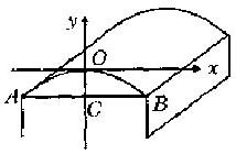 如图所示,以AB的垂直平分线为y轴,以过点O的y轴的垂线为x轴,建立直角坐标系。这时,屋顶的横截面所成抛物线的顶点在原点,对称轴是y轴,开口向下,所以可设它的函数关系式为: y=ax2 (a<0)(1)