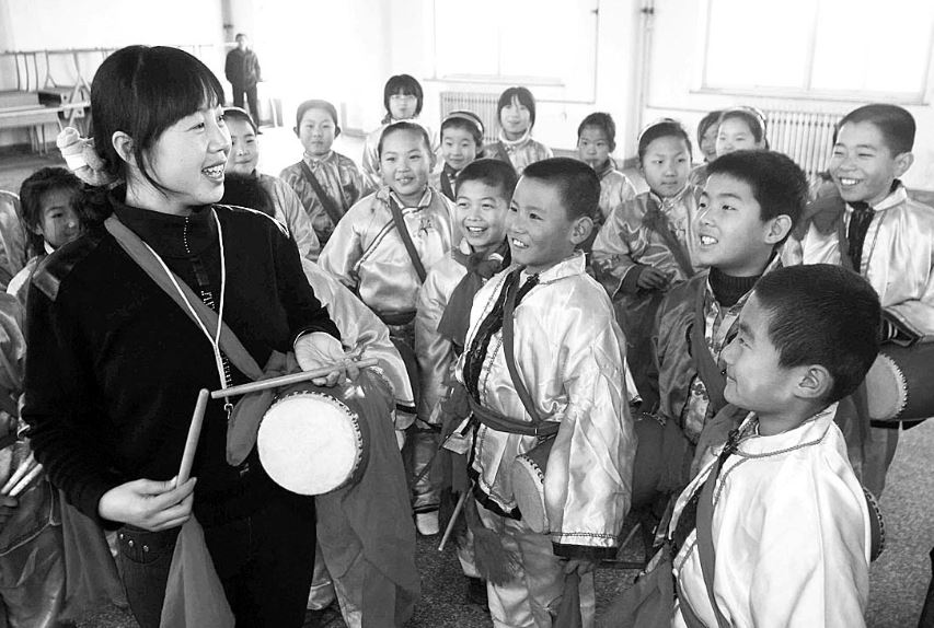 "打腰鼓是一项集体活动,自己打得好不是真的好,全体队友只有齐心协力,才能奏出步调一致的和谐声音。"窦秀青的话让学生们懂得了合作的重要。
