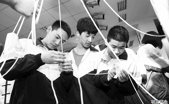 骑着独轮车进行刀削面表演,踩着高跷剪出大小均匀的面条,抻出的龙须面细得能穿进针眼,用面团吹起的气球做面板切菜……这些绝活让天津市军粮城中学的高一年级学生大开眼界,赞叹不已!