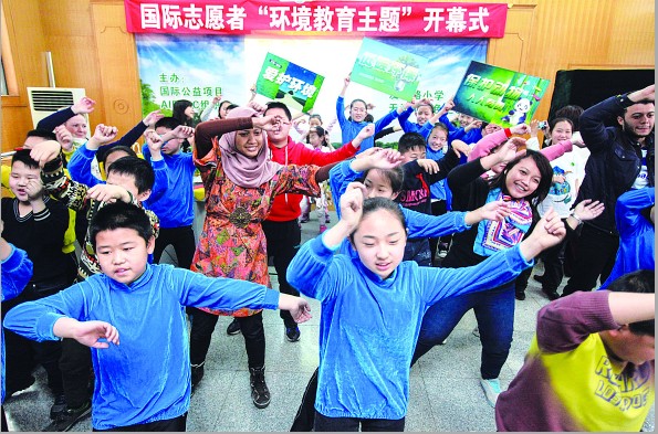 3月29日,国际志愿者环境教育主题活动开幕式在河西区友谊路小学举行。该项目是由“国际经济学商学学生联合会”(AIESEC)主办、天津绿色之友NGO环保组织承办的国际公益项目,主要支持各国的大学生志愿者与中小学生一起开展创造性的废品再利用活动,开展环境教育。 李想 摄