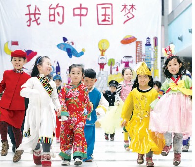 日前,天津青少年活动中心举办“我的中国梦”绘画比赛成果展示活动,来自全市各区县的小朋友共同绘制了一幅面积近30平方米的美丽画卷(背景),展示自己美好的“中国梦”。