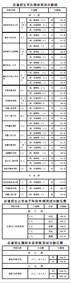 本报讯(记者 马建军)6月27日,从市教育招生考试院获悉,今年在津招生的军事院校(含普通院校招收的国防生)、公安院校(含铁道警官高等专科学校)、中央司法警官学院、国际关系学院和北京电子科技学院等招生院校面试、体检、体能测试分数范围确定(具体分数范围见附表)。