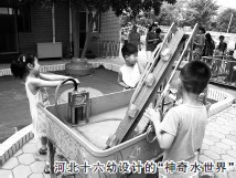 河北十六幼教学副园长高欣说:“每年开放‘水世界’,孩子们都兴趣盎然,玩一整天也不觉得累。其实,制作玩具材料的关键,是教师要用心,要知道孩子们喜欢什么。只有这样,才能应用最常见、随手可得的生活用品,制作出富有创意、好玩的玩具。取材简单,有利于推广和普及,让更多孩子玩得到。”