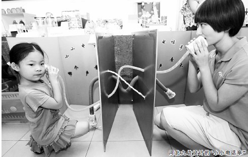 与扶轮幼儿园形成鲜明对比的是河北六幼。2012年以前,幼儿园的建筑面积只有500多平方米。教师们利用这有限的空间,却将游戏教育开展得有声有色。幼儿园注重桌面游戏的开发,还专门出资购买大量建构游戏材料,它有无限变化又不占用空间,能培养幼儿的合作意识、动手能力和逻辑思维能力;楼道里停靠的“角色体验车”,具有银行、超市、花店等不同功能,可配合教学随时被推进班内,节省空间……